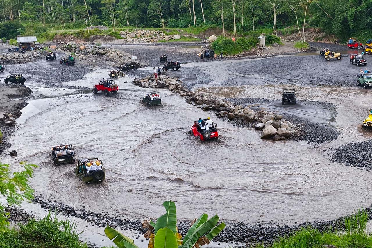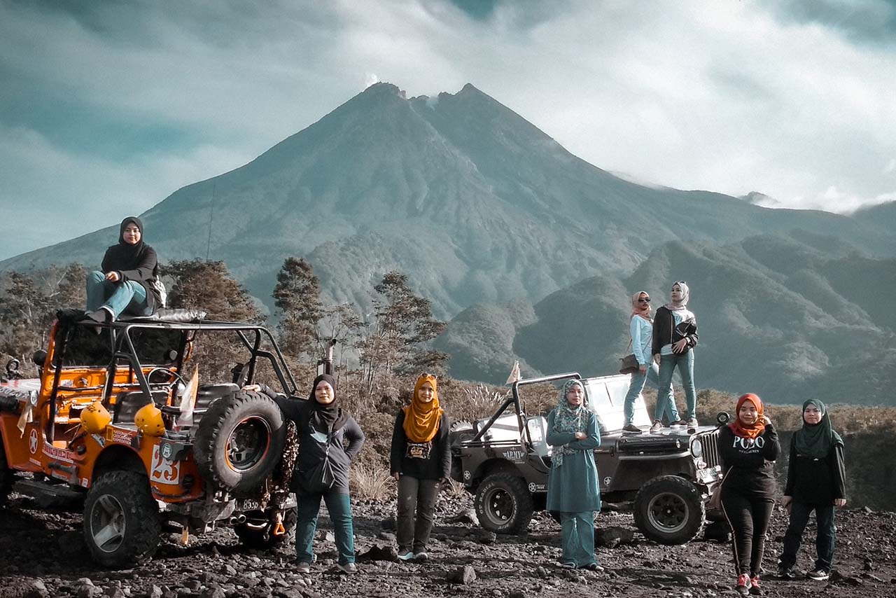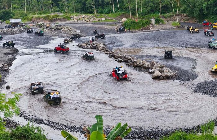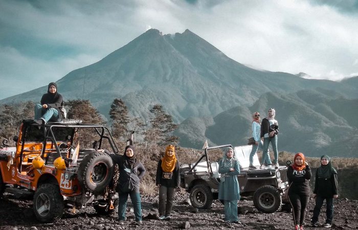 Merapi Jeep Lava Tour – Experience the thrill of riding a 4×4 jeep across the rugged terrain of Mount Merapi’s lava fields. Explore the remnants of past eruptions, visit the famous Alien Stone, and learn about Merapi’s powerful history from local guides.